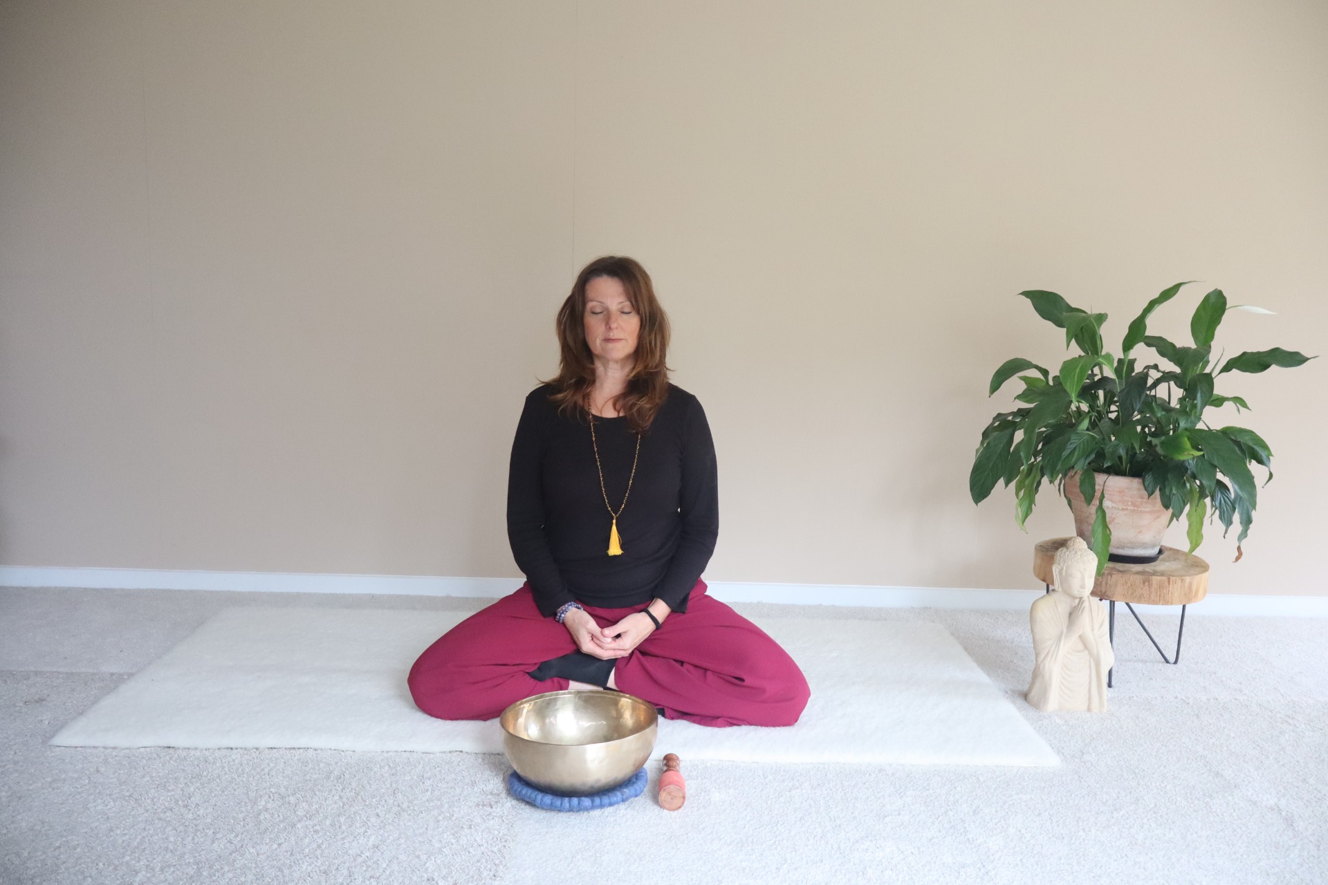 We eindigen de les met een diepe Yoga Nidra, waarbij je warm en comfortabel mag liggen en niets meer hoeft te doen. Het lichaam rust, de geest verzacht, en je zenuwstelsel krijgt tijd om te herstellen.